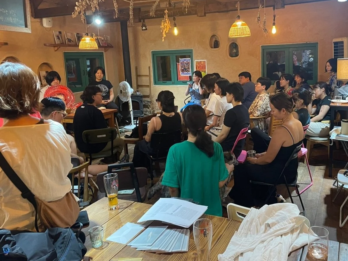 2024년 7월 25일 목요일, 서울 은평구에 있는 카페쓸에서 ≪떠오르는 숨≫ 출간 축하파티를 열었습니다. 접촉면의 친구들이 이 파티의 처음부터 끝까지 모든 과정을 준비해 주었습니다. 운영자인 저는 행사장에 도착할 때까지도 행사가 어떻게 진행될지 전혀 알지 못했습니다. 친구들이 알려주지 않았기 때문입니다.